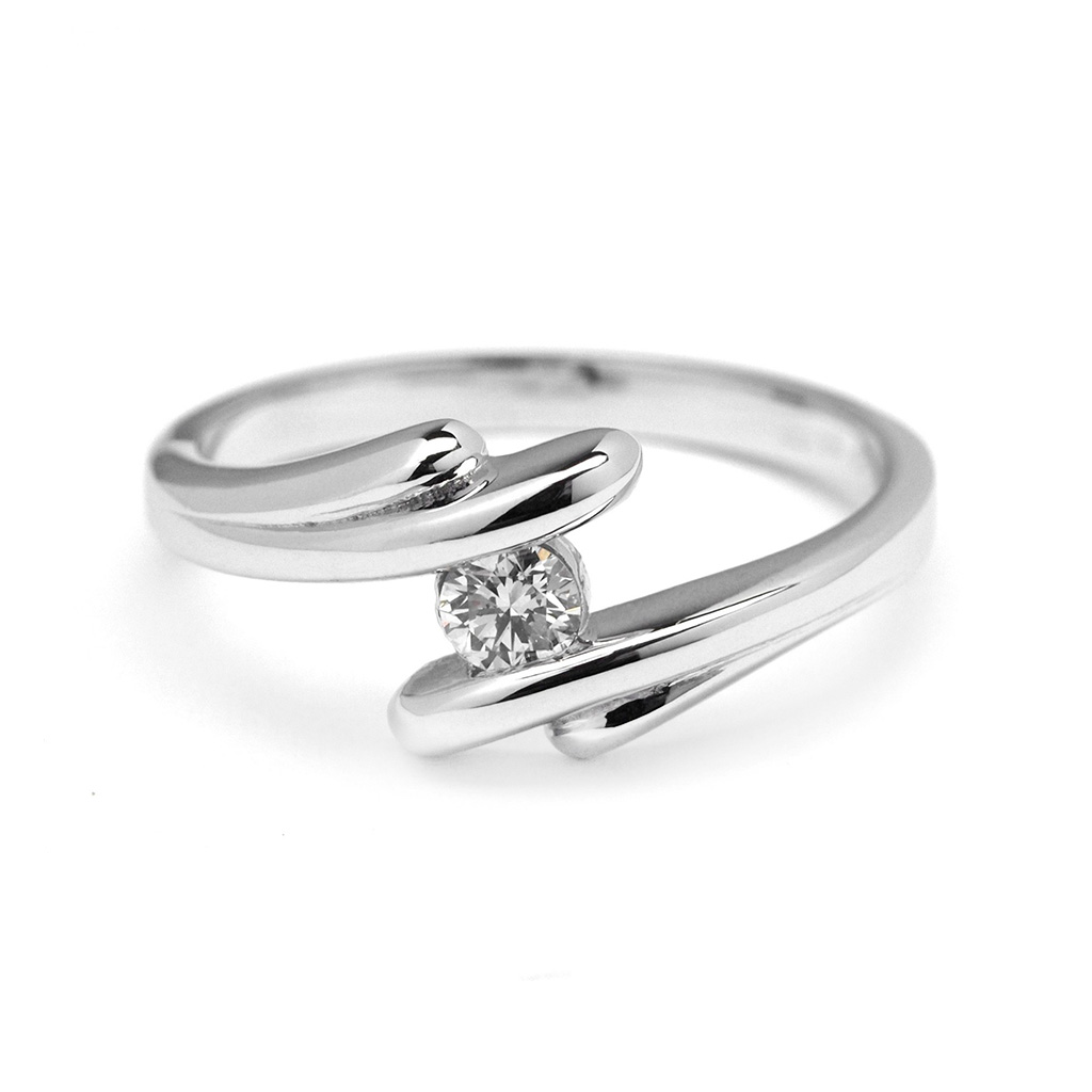 Nepřehlédnutelný bude na ruce obdarované ženy tento zásnubní prsten s výrazně tvarovanou obroučkou ze čtrnáctikarátového bílého zlata, která svírá vzácně bílý diamant o průměru 3,35 milimetru. Neobvyklý prsten je určen klientům, kteří se nechtějí spokojit s tradičním kroužkem. Cenově je stále v kategorii dostupné i pro mladé páry, ale je dražší než drobnější prstýnky, protože čistá hmotnost zlata dosahuje téměř tří gramů.